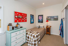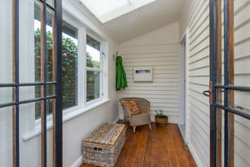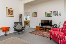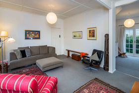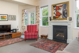 The front sitting room (west facing) has a warm, restful atmosphere with afternoon sun streaming through the French doors, flows nicely to a private courtyard and lawn - ideal for outdoor entertaining.