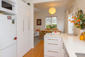 Wander through to the open plan living, dining /kitchen area. This is the hub of the house - morning sun pours into the modern kitchen and dining area. Step out to the deck or watch the children from the kitchen. In the winter months a gas fire heats the home.