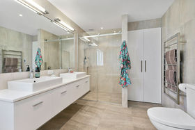 * The master bedroom is fit for a king and queen, with size, space and light capturing the large room. Fitted with walk in wardrobe, and heated tiled floor, no expense has been spared, when it comes to this fit out and style.