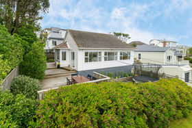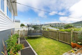 Superb flow from expansive decking down to flat lawn with trampoline area, perfect for weekend entertaining.