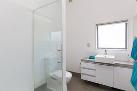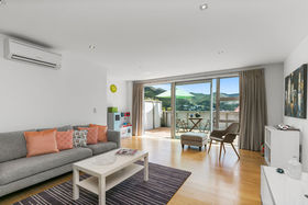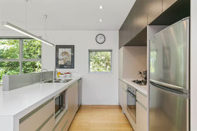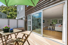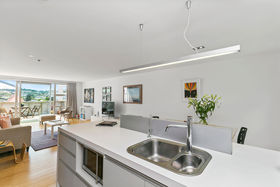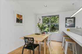 Light, sunny open plan living, modern kitchen /dining has lovely atmosphere with the attractive bamboo flooring. Sliding doors open out onto the large north/west facing deck overlooking the lush green hills, a treat for city dwellers.