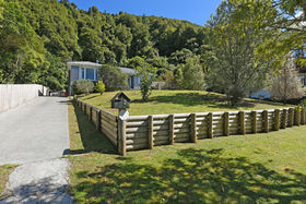The property is bounded on two sides by Akatarawa Forest Park. Native frogs live next door. You could love living in this honest 1950's 3 bedroom home, with indoor-outdoor flow to a safe garden, woodburner for the winter months, and a big old garage/ shed. It is elevated above the river and with lovely outlook. The street also boasts a new $3.8 million bridge!