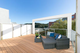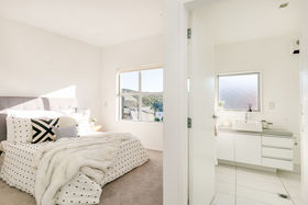 This beautifully presented property has a generous and well proportioned open plan kitchen/living area opening onto large north/west facing sunny deck, overlooking the lush green hills - a treat for city dwellers. Three double bedrooms two with ensuite and a third family bathroom with bath. Additional study/teenage area or nursery upstairs.