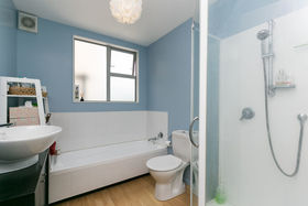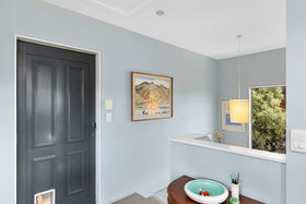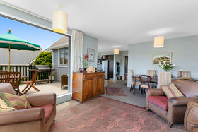 Downstairs are two double bedrooms with good sized wardrobes, a third bedroom/home office/nursery, a good sized bathroom and continental laundry. Doors from two bedrooms open onto the downstairs deck area and out to the side paved courtyard.