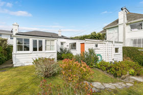 Secondly, the other home with street frontage and access to the rear established garden is a younger brick & weatherboard home on two levels with wrap-around balcony, amazing sea views and fantastic sun as well as a flexible floorplan which could be configured as 4 or 5 bedrooms plus study, however the choice is yours. There are two bathrooms, semi-open Kitchen, spacious lounge/dining combination with never-ending Harbour Views, plus, large workshop and two single garages with internal access.
