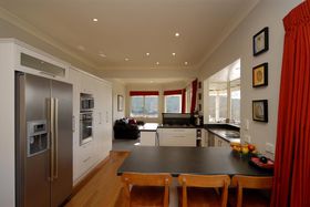 Modern kitchen with five burner gas hob, pull out pantry, wall oven, plenty of bench space and yes - views to the peak, the perfect social kitchen with room to work and entertain.