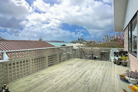 * HOUSE: 3 bedrooms, small study, 1980's family home with an extra room downstairs - could be a generous studio or extra 4th bedrooom. alongside a Man Cave /workshop space, storage area and plenty of parking. Elevated wrap around decking on two sides receives all day sun allowing enjoyment of the extensive views of city, sea and neighbourhood. Room to park the boat!