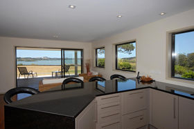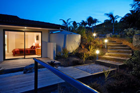 With a neutral colour palette throughout and extensive use of rich Asian oak flooring, the main residence has three/four bedrooms, two luxurious hotel style bathrooms, an office and open plan living/dining/kitchen stretching outside to wide and covered decks, a perfect place to relax and absorb the true extent of the exquisite views. To the east is lush rolling farmland which gives way to the panorama of the Kerikeri Inlet all the way to the entrance of the Te Puna Inlet and beyond, across to the hills of Mataka and back to Doves Bay, Rangitane and Skudders Beach, just across the channel.