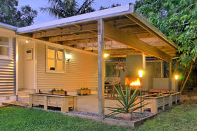 With the front deck and an impressive pavilion styled rear entertaining area both offering outdoor fireplaces for warm, cosy evenings all year round, but also feature lighting inset in the pathways.