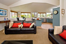 If you are looking for a well located, stylish home that offers an easy-care lifestyle then this will tick all your box's. Award winning designer Fraser Gillies has created a stylish, individual home adorned with plenty of luxurious extras. Three spacious bedrooms, the master with a stylish, new spacious ensuite and the third offering excellent separation on the lower level with its own bathroom - perfect for guests or older children. The spacious open plan living maximizes the excellent views and flows to deck perfect for a quiet drink or family barbeque. No lawns means you have stress free weekends but the home still offers good indoor/outdoor entertaining areas and space for relaxing outdoors and entertaining, but without the hassles of larger gardens.