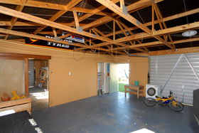 What a set up for the teenagers, with the huge separate lined outside room and its own bathroom and lounge (12 X 6m). The 3 bedroom house isn't bad either, with modern kitchen and flow to the sunny deck. Double garage too! There's a lot for your money here! Any avid car enthusiasts dream! Work on the hot rod whilst you watch the V8's! One not to be missed.