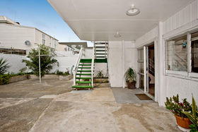 With an eye to the future here is a sensible and affordable entry into Devonport without compromising space and location. Rarely is there an opportunity to purchase a home with internal access from a double garage particularly with high stud and re-enforced steel beams for future modernisation. The studio size downstairs area would suit a myriad of uses such as work from home or as a massive playroom for children or theatrette. The outdoor area is within easy access downstairs and would make a delightful outdoor garden or as extra parking. Upstairs the large lounge has an outdoor decking area with views of Mt Victoria. With some imagination and clever refurbishment this contemporary look