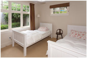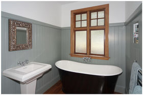 The toilet adjoins, but is separate from the family-sized bathroom with its elegant deep bath.