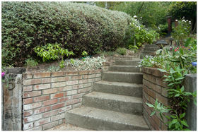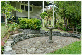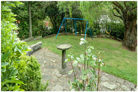 Out the back the lawn has been terraced for easier maintenance and play, - there's a play house too.