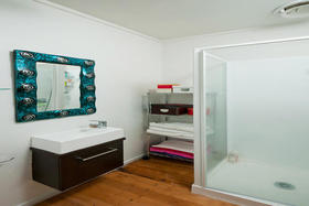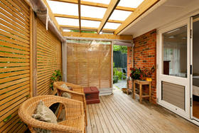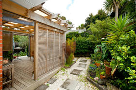 Very modern open living that is light bright and airy. French doors from the living area and bedroom flow outdoors to your exclusive area and court yard.