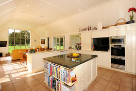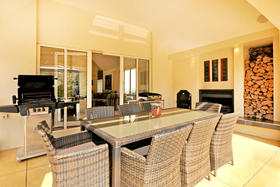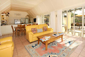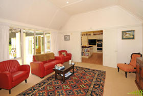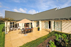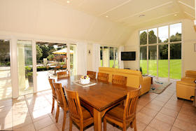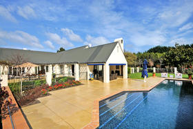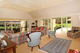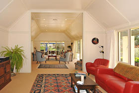 With the mild climate of Kapiti, an emphasis is on outdoor 'Dining by the pool', 16m, heated, and where the dining area with open fire has witnessed many enjoyable gatherings.