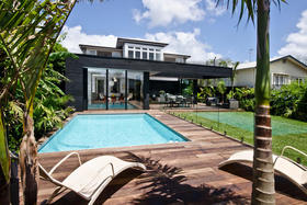 Step inside this meticulously renovated 320sqm bungalow and be pleasantly surprised by the clever transition from classic traditional spaces to the modern pavilion extension that puts this property into a class of its own. 5 double bedrooms, 3 gorgeous bathrooms and 3 separate living areas. Allow the senses to rejuvenate in the large master suite with private deck. An extensive open plan lounge, dining and amazing kitchen open seamlessly through floor to ceiling stacking doors to expansive 135sqm north facing decks complete with in ground pool and fabulous outdoor living and surrounded by lush tropical gardens. In ceiling air-conditioning, feature gas fireplace, TV and audio wall. With French oak herringbone floors downstairs and restored Matai up, pristine white and black interiors, strategic use of materials and lighting this home will entertain and delight.