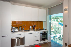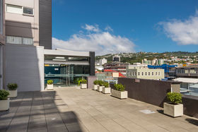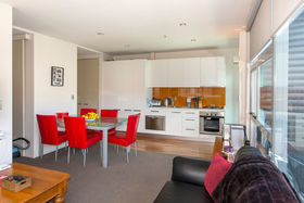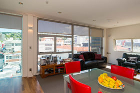 Contemporary and stylish two bedroom, two bathroom, VERY SUNNY, corner apartment with long balcony overlooking Cuba St and to the Kelburn hills. Dual access. Handy to University and the activity of the Cuba Quarter! A wall of glass faces Cuba Street for brilliant afternoon SUN. Great cafes really close by. Movie theatre just out the back door. Gym and lap pool/spa in the building. It doesn't get much better than this!