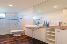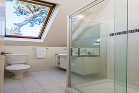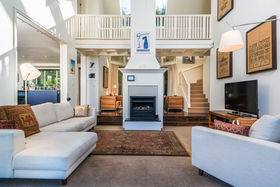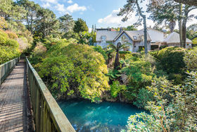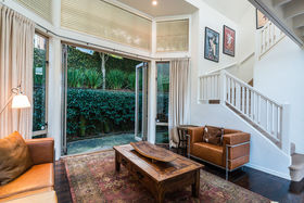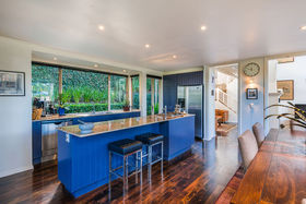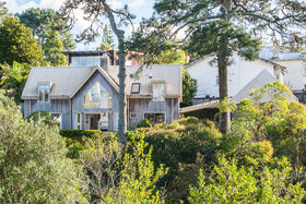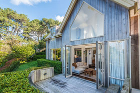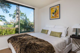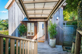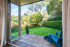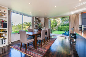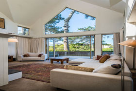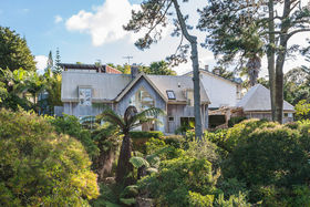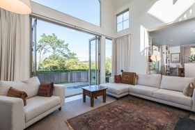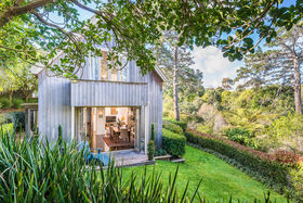 Feels as far from the city lights as you could be in a beautiful, sheltered leafy setting overlooking Cox's Bay Reserve. Surprisingly, this elegant architect designed family home is hidden, moments from Jervois Road cafes & shops, Bayfield Primary & the West End tennis courts. In the other direction, Richmond Road café & Farro are a short stroll across the reserve & walkway. Inspired modern Cape Cod-style design by Koia Architects creates voluminous twin living spaces on either side of a double-sided fireplace that towers up through a double height ceiling. Both aspects draw the outdoors inside across sunny decks and the large kitchen/dining area spills out to immaculate landscaped lawns. Welcoming interiors have a crafted ambience with built-in bookshelves and beamed ceilings. It features four bedrooms (3 up including the master ensuite and a guest bedroom down) and three bathrooms. Plus there's a study nook and separate laundry plus a large single garage with loft storage and offstreet parking.