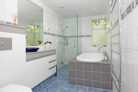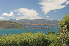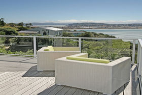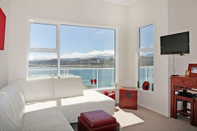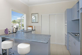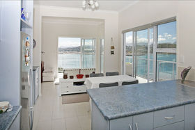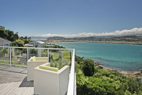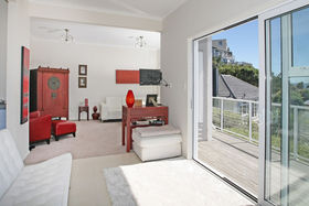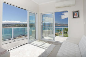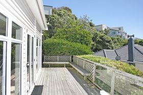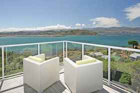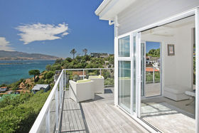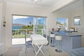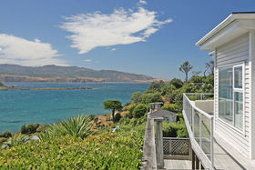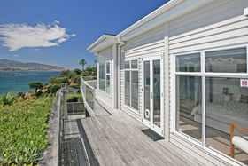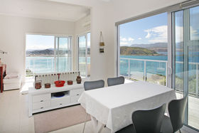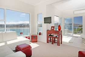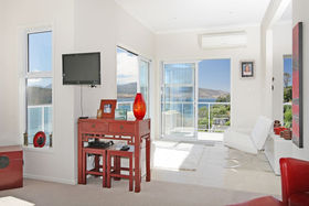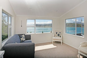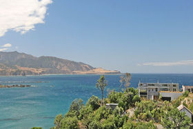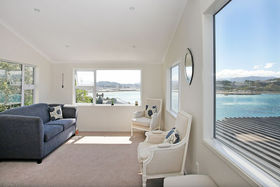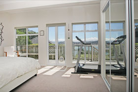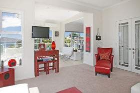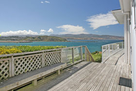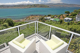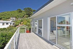 An immaculately presented, sunny three/four bedroom home with two bathrooms (one ensuite), a huge three car garage, spacious open plan living, breathtaking sea views and multi indoor/outdoor flow from several parts of the living areas on to a wide wrap around deck. A short walk down gives this property shelter, seclusion, privacy and warmth. The luxurious master bedroom offers a huge quadruple wardrobe with full length mirrored doors and access to deck. Also offering, a remote door garage plus three extra car parks, a study, a second living room or fourth bedroom, bus stop at door, a large sloping section with multiple flat areas plus play house. RV$690,000