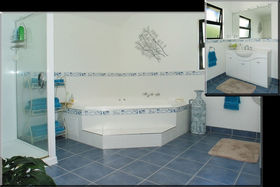 Open plan living areas and master bedroom with ensuite all on ground level. Three bedrooms plus study upstairs.