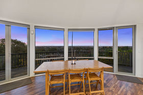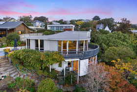 A unique semi-circular design takes advantage of the sun all day and optimises the view. With a deck stretching along the northern front of the house you will enjoy the outdoor/indoor flow from the living room. Summer will come again and you can entertain in those long evenings.