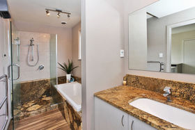 Be the envy of your friends with a luxurious bathroom, granite walk in wet-floor shower, granite top on the vanity and bath surround.
