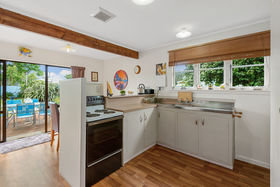 Featuring an open plan kitchen and dining with plenty of storage space, a separate sun-drenched lounge, two double bedrooms with built in wardrobes, an additional sunroom or nursery off one of the bedrooms, two heatpumps, and plenty of sunlight to keep you warm. The interior is very tidy but also offers plenty of scope for you to apply your own sense of style, adding further value to your investment in the process. Leading off the dining, the generous deck is ready for your summer BBQ's and provides great outdoor entertaining options.