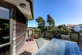 Sitting elevated, the open plan living has a very nice urban outlook attracting good sun. Three bedrooms, master with ensuite. There is a separate, private lounge with wood burner.
