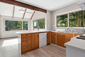 The privately positioned home has recently been remodelled with a fresh coat of paint in neutral tones and is perfectly accented by the timber beams and trims. The new carpet, vinyl as well as upgrades to the two bathrooms ensure all the hard work has been done and awaits you to stamp your personality with furnishings. The lounge features a heatpump offering assurance of warmth or coolness, whatever the season. Open plan living is highlighted by the stream of light that floods through a series of ranchsliders opening to patio areas for entertaining.