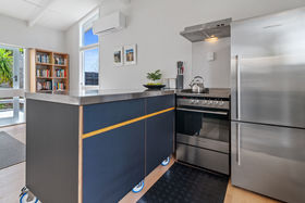 Enjoy cool and contemporary beach life in this sleek and stylish holiday home. The original 1970s bach has been transformed by a high-quality fit-out, so your beach summers and your remote working location are ready to go. Located in the premium north end, just two minutes' walk from both the surf beach and estuary - this sophisticated bach is ideal for families of all stages.