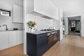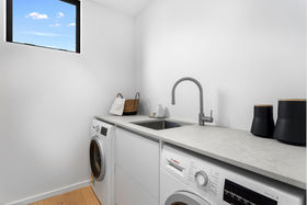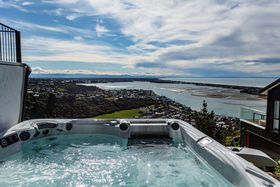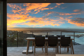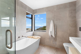 A separate laundry, guest powder room, and in-slab hydronic heating on the ground floor accompany an extra-deep internal-access double garage with valuable off-street parking, reinforcing the home's everyday capability, while landscaping shapes the section without drawing attention from the view. Above it all yet minutes from village life, the sand and surf, this residence captures Sumner at its most private and panoramic.