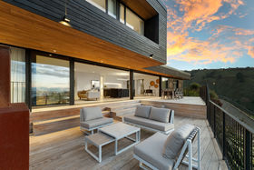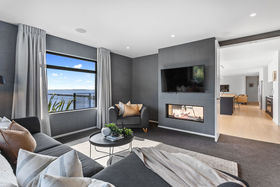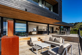 Defined as much by outlook as by design, this contemporary residence sits high above Sumner, drawing a panoramic sweep across Pegasus Bay and the Kaikouras into daily view. Completed in 2020, the charred finish in the style of Japanese shou sugiban with a 'heavy alligator' finish creates a dramatic first impression. Thoughtfully framing a flexible two-level layout arranged for practicality as much as presence, with an unbroken connection to its coastal surroundings.